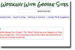 My students are using Google Sites as a portfolio to hold all of their creative work. There are a lot of questions about how to use the many features, so we’ve been “Asking The Google” and found this good site. Google Trainer, Tony Amsler, offers a range of tips for beginners and experts alike, including his very helpful articles in the “Good to Know” section.